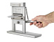 Машина блистерная Top Blister используется для запаивания одиночных расфасованных блистеров и оборудована отсеком для установки сменных платформ для упаковки, форма гнёзд которых зависит от карманов применяемых блистеров. Для упаковки таблеток и капсул используются готовые приложения разного формата и уже нарезанная фольга. Электрическое оборудование быстро набирает необходимую температуру, после чего платформа с размещённым блистером устанавливается в гнездо аппарата.